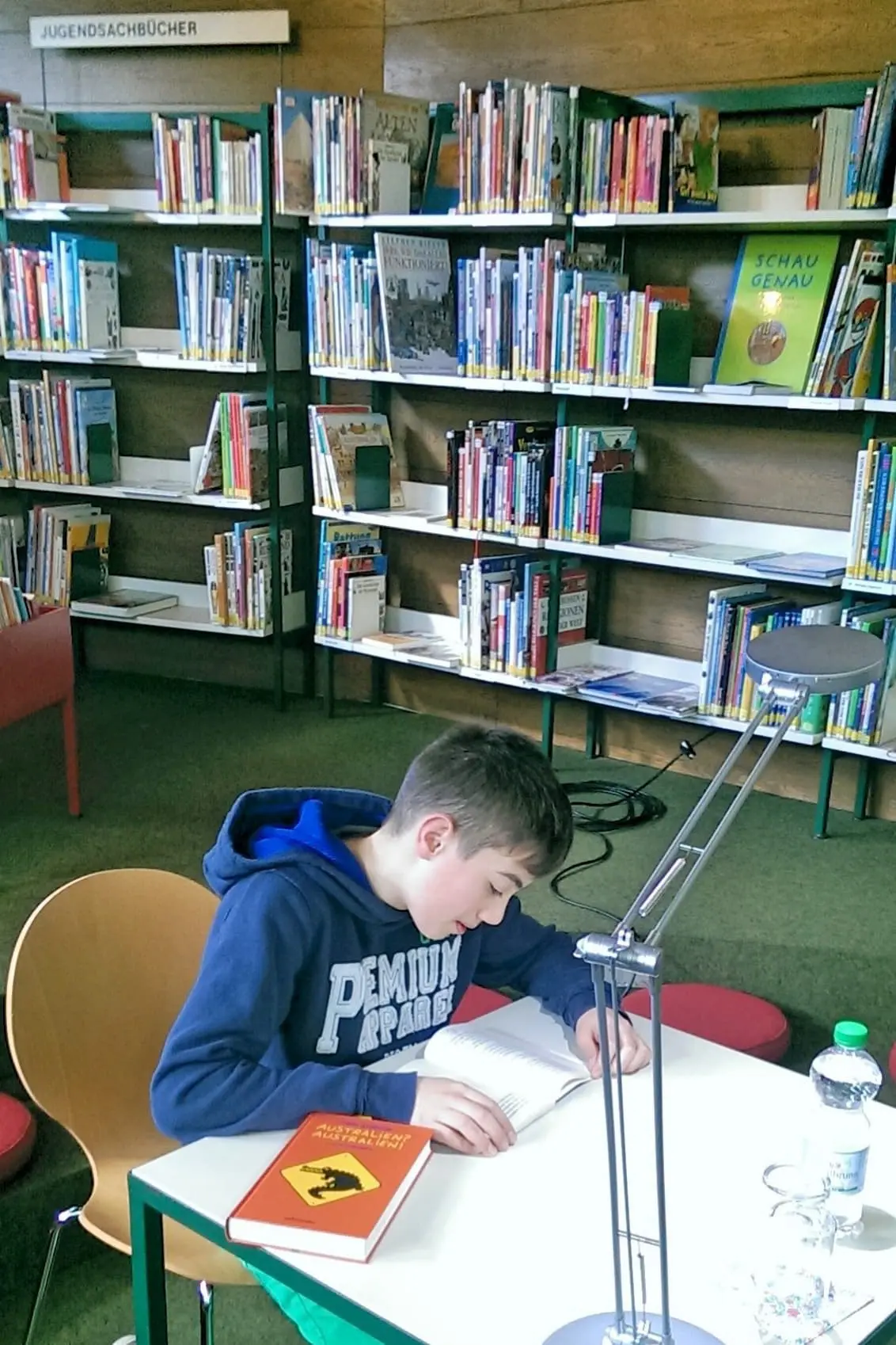 Dzenis Ibrovic, ein Schüler des Albert Schweitzer Gymnasiums, nahm an dem Wettbewerb teil und las aus dem Buch „Ich schenke dir eine Geschichte“, Der Wald der Abenteuer von Jürgen Banscherus vor.