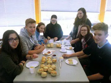 Während sie in zwei Stunden in den englischen Unterricht ihrer Gastpartner hinein schnuppern durften, hatten sie zuvor noch die Gelegenheit, die Sonnenfinsternis zu beobachten. Außerdem stand der typisch englische „cream tea“ auf dem Programm. Hierzu werden Scones gebacken, die mit Marmelade und einer Art Buttercreme bestrichen werden. Dazu trinkt man traditionell Tee.