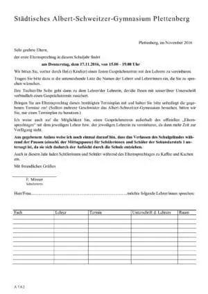 Bringen Sie am Elternsprechtag diesen bestätigten Terminplan mit und halten Sie bitte unbedingt die gegebenen Termine ein! (Sollten mehrere Geschwister das Albert-Schweitzer-Gymnasium besuchen, bitten wir Sie, nur einen Terminplan zu benutzen.)