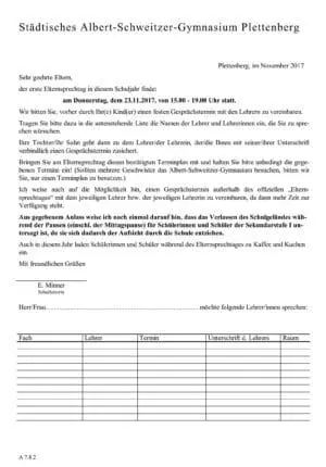 Bringen Sie am Elternsprechtag diesen bestätigten Terminplan mit und halten Sie bitte unbedingt die gegebenen Termine ein! (Sollten mehrere Geschwister das Albert-Schweitzer-Gymnasium besuchen, bitten wir Sie, nur einen Terminplan zu benutzen.)