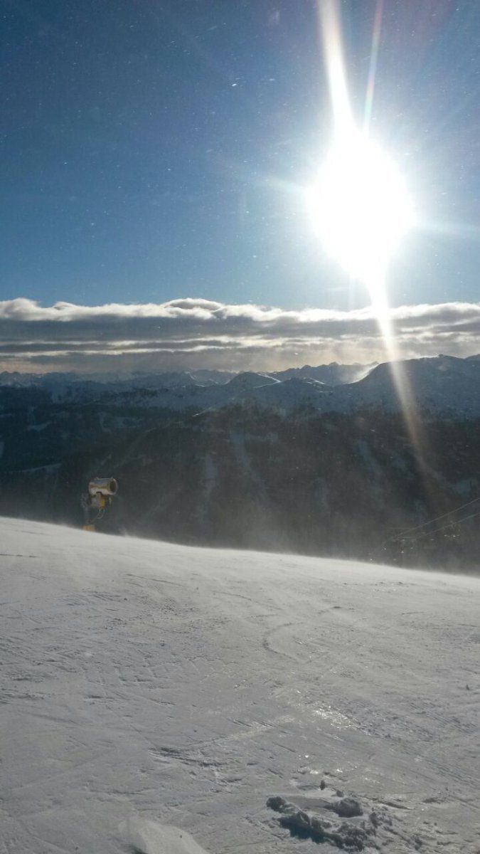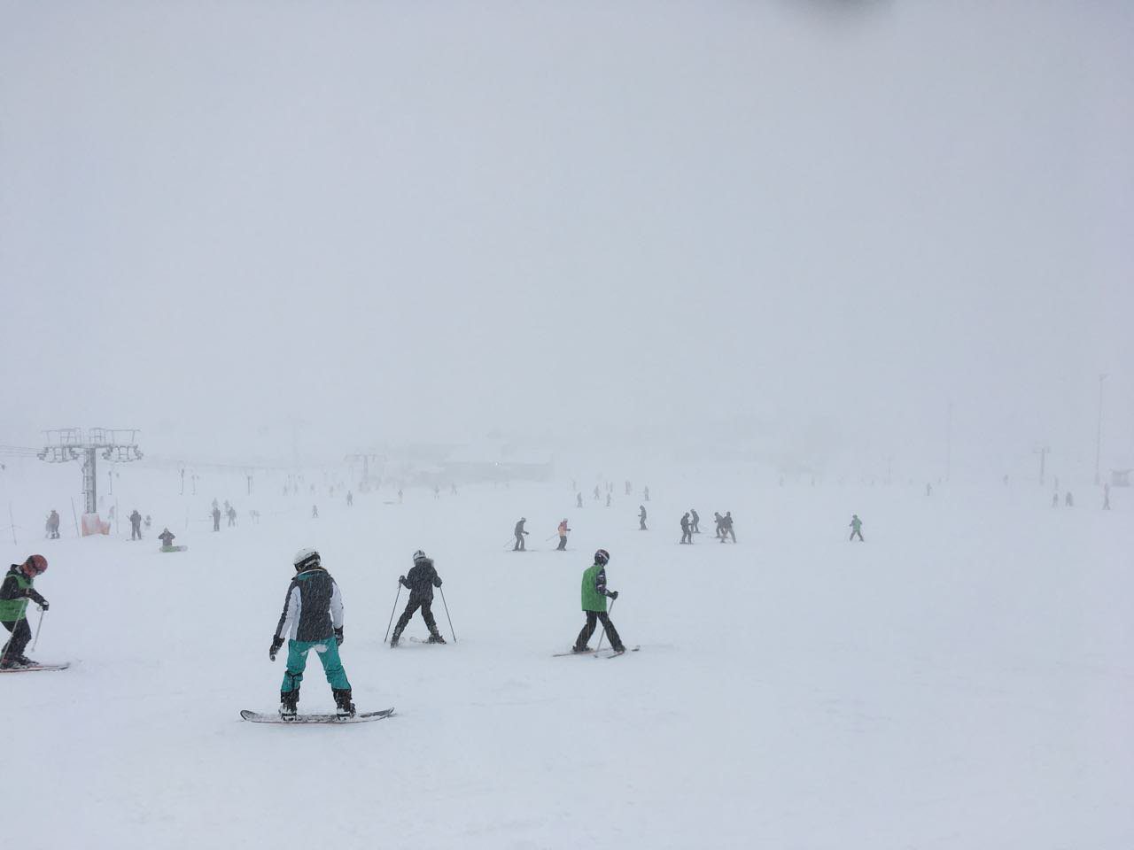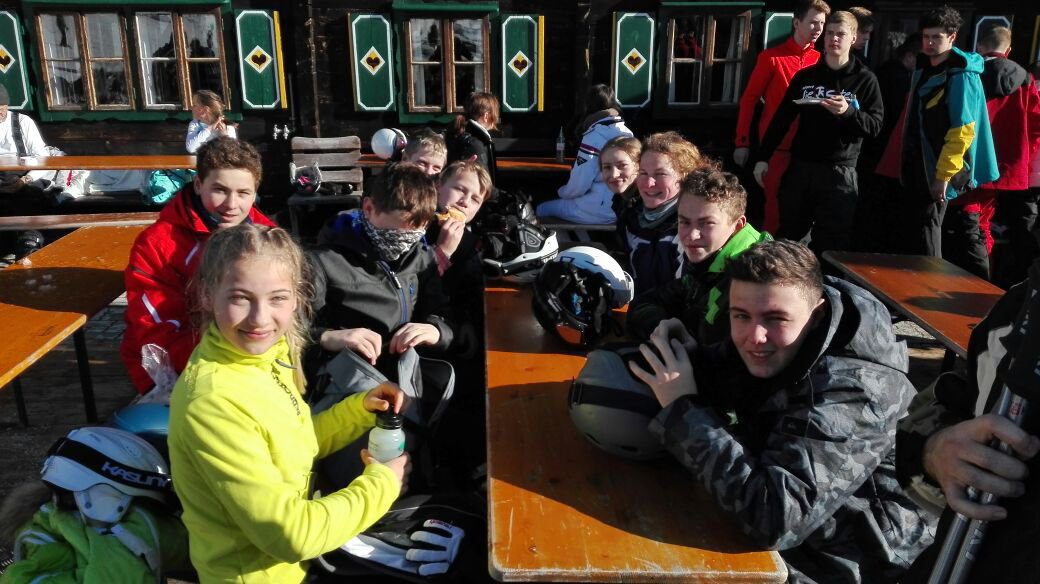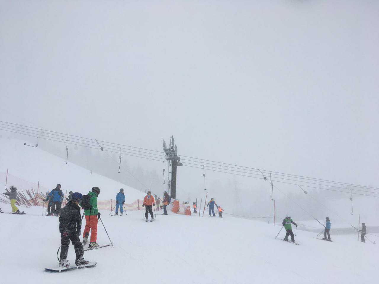Anders zeigte sich allerdings das Wetter in der zweiten Woche der Exkursion, in der die Klassen 9a und 9b unterwegs waren. Die Fotos bestätigen, dass oft sehr schlechte Sichtverhältnisse und auch hohe Windgeschwindigeiten zum Aufenthalt auf der Alm zwangen. Dennoch waren ein paar schöne Ski-Stunden am Berg möglich, wie uns diese Bilder zeigen: