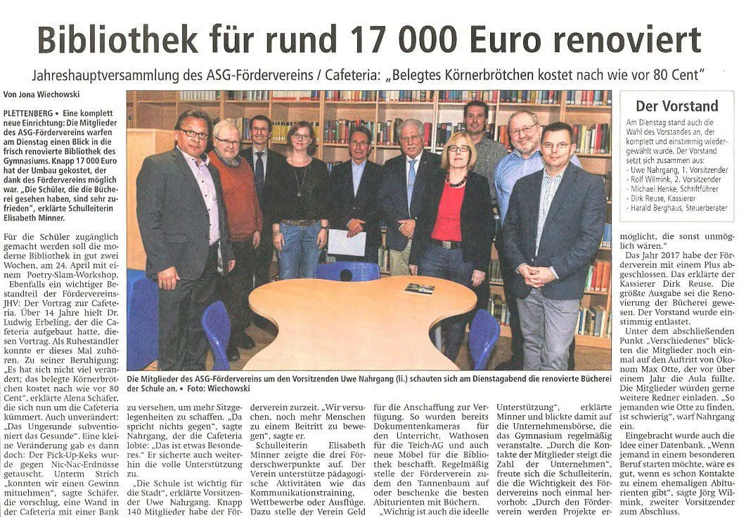Aktuelle Seite: Start / Aktuelles / Jahreshauptversammlung des ASG-Fördervereins in der neuen Bibliothek