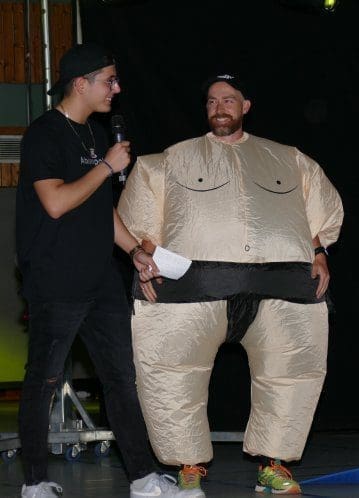 Schon am Mittwoch, den 19. Juni, haben die 71 Abiturientinnen und Abiturienten ihr erfolgreiches Abitur gefeiert. Dazu haben sie alle Schülerinnen und Schüler sowie die Lehrkräfte zum Abiulk unter dem Motto “Abinopoly – 12 Jahre auf dem Gefängnisfeld” in die Sporthallen eingeladen. In verschiedenen Spielen mussten ausgewählte Schülerinnen und Schüler gegen Lehrkräfte antreten, um so Credits zu erspielen, mit denen zum Schluss der Stufenleiter der Abiturientia Herr Rinke befreit werden konnte. Davor musste allerdings im letzten Spiel Herr Pongratz als Endgegner im Sumoringerkostüm besiegt werden. Natürlich durfte auch ein Showtanz des Tanzprofilkurses zusammen mit dem Kurslehrer Herr Berling nicht fehlen.