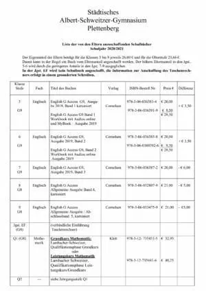 der Eigenanteil der Eltern beträgt für die Klassen 5 bis 9 jeweils 26,00 € und für die Oberstufe 23,66 €. Damit kann in der Regel ein Buch vom Elternanteil angeschafft werden. Der höhere Elternanteil in den Jgst. 5-6 wird durch die geringeren Anteile in den Jgst. 7-9 ausgeglichen.