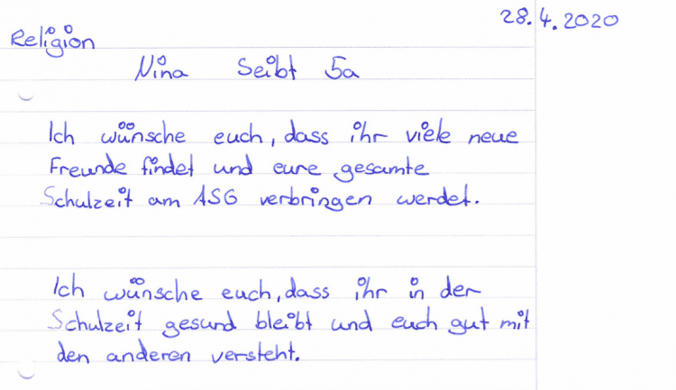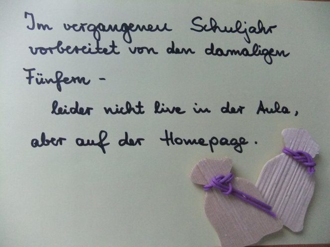Die Andacht im September wurde von den Schülern der ehemaligen Klasse 5 schon im April gestaltet und ist jetzt online zu sehen:
