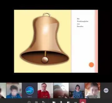 Mit dem Glockengeläut der Friedensglocke aus Dresden füllt sich der Bildschirm aller an der Andacht Teilnehmenden mit den uns allen inzwischen so bekannten Kreisen, Bildern, Anfangsbuchstaben, manch ein Teilnehmer hat auch die Kamera eingeschaltet.