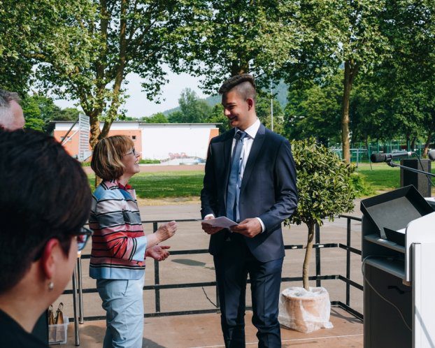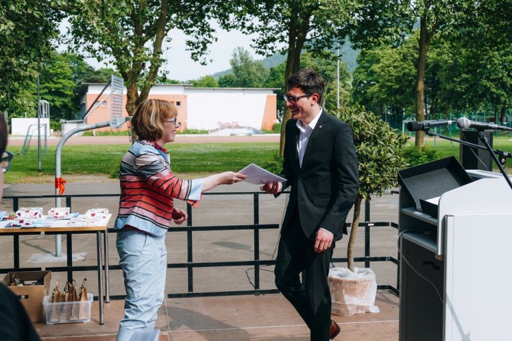 Ebenfalls wurde den Eltern ein Dank ausgesprochen, die durch ihre Mitarbeit in zum Beispiel der Schulpflegschaft oder in den Schulkonferenzen über zum Teil Jahrzente konstruktiv mitgewirkt haben. Ein besonderer Dank geht hier an Herrn Hömberg, der 10 Jahre den Schulpflegschaftsvorsitz inne hatte.