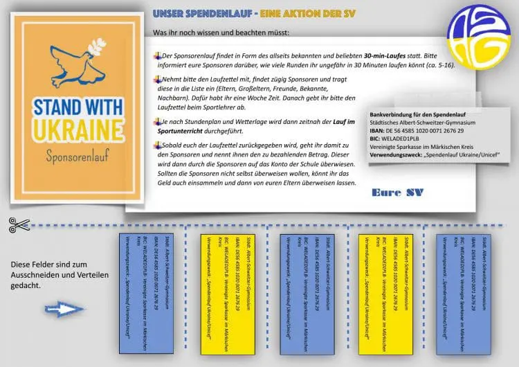 Kategorie: Aktuelles, Eltern-Termine Stichworte: Spendenlauf, Sponsorenlauf, Ukraine, UNICEF