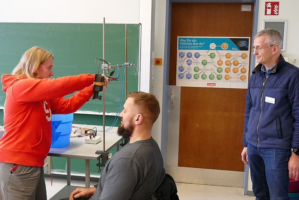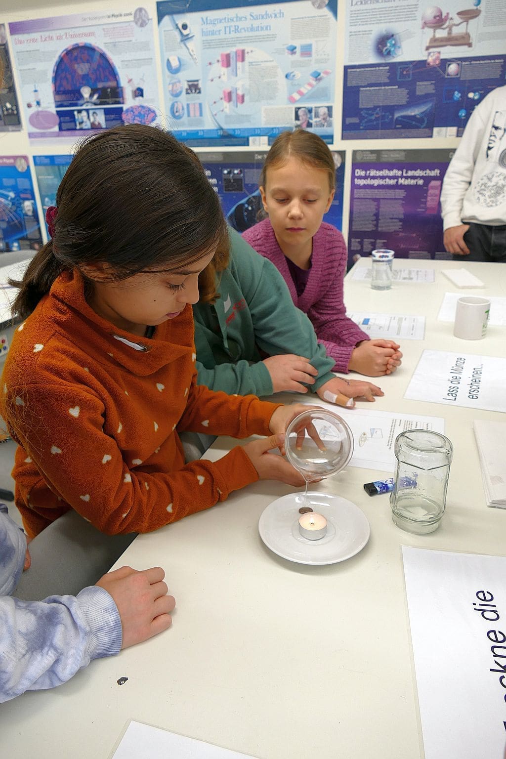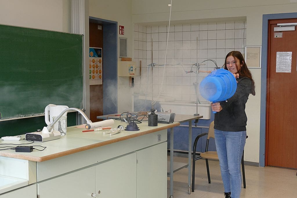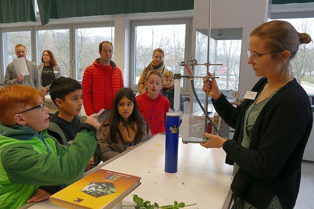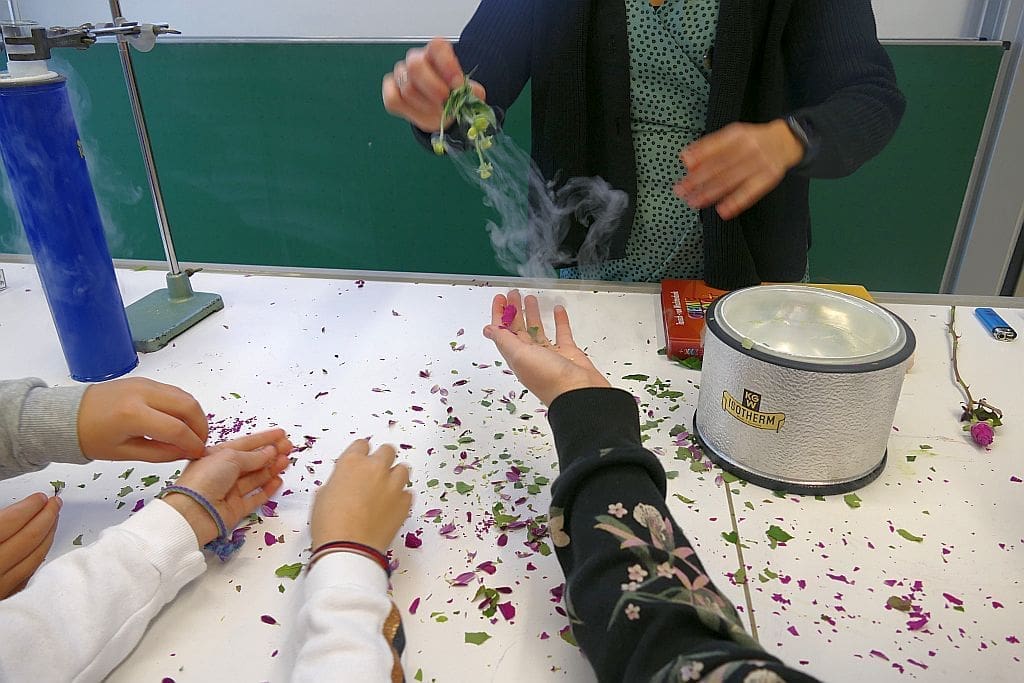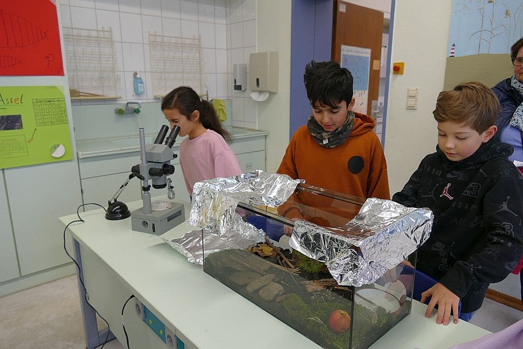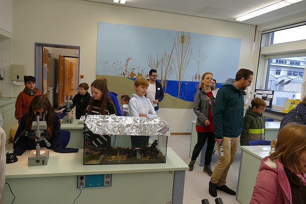 So konnten im Physikraum viele kleine Experimente ausprobiert werden. In der Biologie gab es die Möglichkeit zu mikroskopieren und Asseln in eigens dafür angelegten Terrarien zu beobachten. Im Chemieraum wurden Versuche mit flüssigem Stickstoff gezeigt, der sogar Blumen zum zerspringen bringt.