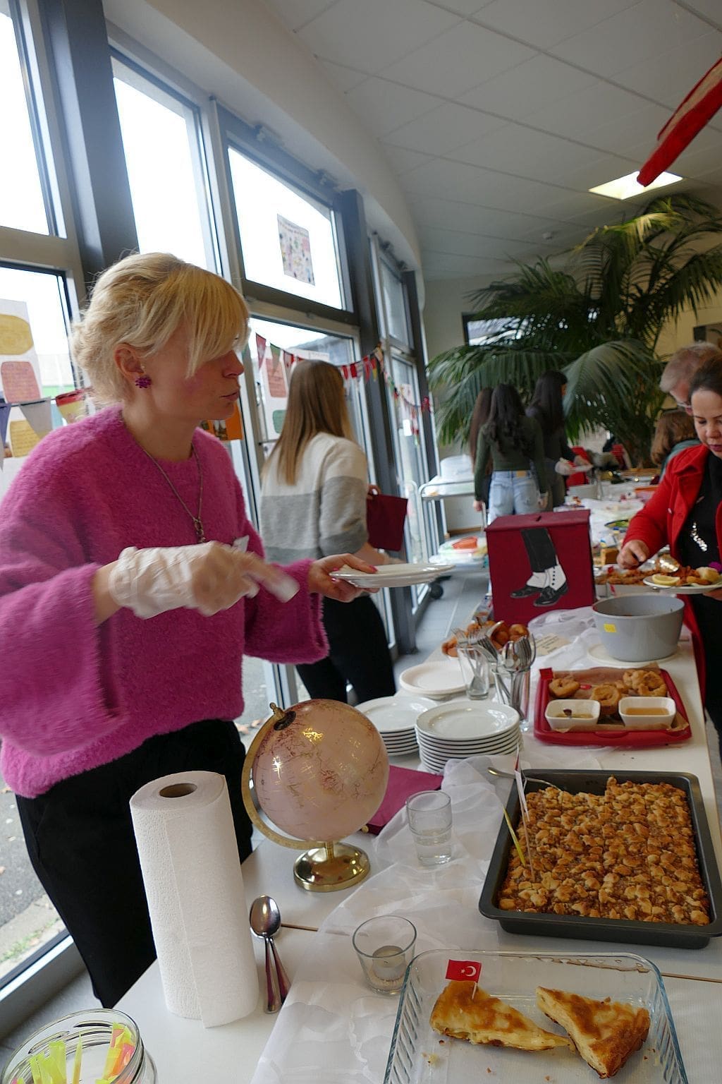 Auch für das leibliche Wohl war bestens gesorgt – viele engagierte Mütter spendeten Kuchen und in der Mensa wurde ein internationales Buffet angeboten, wo beispielsweise Speisen aus Griechenland, der Türkei, Marokko und Afghanistan probiert werden konnten.