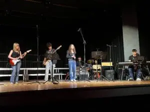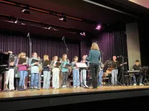Am Donnerstag, den 14.03.24 fand nach langer Pause endlich wieder ein Konzert aller Ensembles statt. Musikalische Beiträge gab es sowohl vom Unterstufenchor, der Schulband, dem Chor und den Schülern der 5. Klasse, die gemeinsam das Lied “Ein Kompliment” sangen. Die zahlreichen Zuschauer waren begeistert und belohnten die Ensembles mit reichlich Applaus.