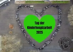 Gemeinsam bildete die Schulgemeinde ein großes Herz und hielt die grünen Bänder, die für den Tag der Kinderhospizarbeit stehen, hoch. Diese Bänder wurden anschließend vor dem Haupteingang der Schule an den Bäumen befestigt, um auf diesen bedeutenden Tag aufmerksam zu machen.
