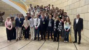 Am 04.02.2025 war es endlich so weit: Wir, die Sozialwissenschaftskurse der EF, machten uns mit Frau Lengelsen und Frau Buraimoh auf den Weg zum Landtag nach Düsseldorf. Unsere Reise begann um 9:30 Uhr am Bahnhof und trotz zahlreicher Verspätungen erreichten wir pünktlich um 13:00 Uhr unser Ziel und konnten um 13:30 Uhr den Landtag betreten. Nach einer gründlichen Sicherheitskontrolle und der Abgabe unserer Jacken und Taschen an der Garderobe wurden wir von einer Mitarbeiterin des Landtags herzlich empfangen und über den Ablauf des Tages informiert. Nach einer kurzen Einführung ging es auch schon los: Der erste Höhepunkt des Tages: der Plenarsaal. Dort durften wir wie echte Abgeordnete Platz nehmen und erlebten das Parlament aus der Perspektive eines Politikers.