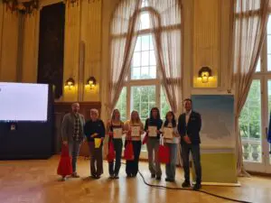 Nach der Vorstellung der Finalisten-Videos wurde es spannend: In der Kategorie Geistes- und Gesellschaftswissenschaften (Sek II) holte das Team aus unserem Geografiekurs tatsächlich den 1. Platz! Die Freude war riesig, und natürlich wurden gleich Erinnerungsfotos in der imposanten Kulisse der Bezirksregierung gemacht.