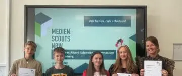 Medienscouts am Städtischen Albert-Schweitzer-Gymnasium Und wir sind dabei! Cybermobbing, Gewaltvideos auf dem Handy, Einstellen von urheberrechtlich geschützten Fotos und Videos bei Youtube oder illegale Film- und Musikdownloads – die ...