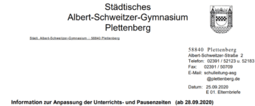 Information zur Anpassung der Pausen- und Unterrichtszeiten