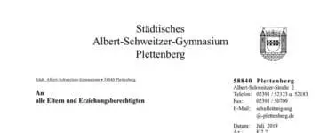 Mittagsverpflegung am Albert-Schweitzer-Gymnasium Plettenberg Änderung ab dem Schuljahr 2019 / 2020 Liebe Schülerinnen und Schüler, sehr geehrte Eltern, unsere Mensa, wurde bis zum 31.07.19 von der Stattküche betrieben. Ab dem 01.08.2019 ...