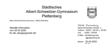 Info: Wiederaufnahme des Schulbetriebs für die Q2 (20.04.2020)