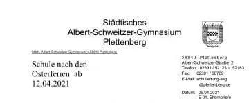 Liebe Schülerinnen und Schüler, sehr geehrte Eltern, wir warten alle gespannt auf den Start des Wechselunterrichtes. Leider haben wir Stand 17.45 Uhr keine offiziellen Informationen über einen möglichen Start in der nächsten Schulwoche. Am Montag, ...