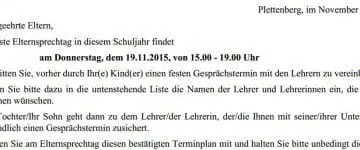 Elternsprechtag am Donnerstag 19.11.2015