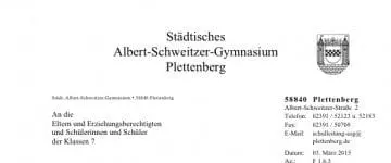 Am Donnerstag, dem 29. Januar 2015 findet von 16-19 Uhr der diesjährige Informationstag in Kooperation mit dem Förderverein des Albert-Schweitzer-Gymnasiums für alle zukünftigen Abiturientinnen und Abiturienten am Albert-Schweitzer-Gymnasium in ...
